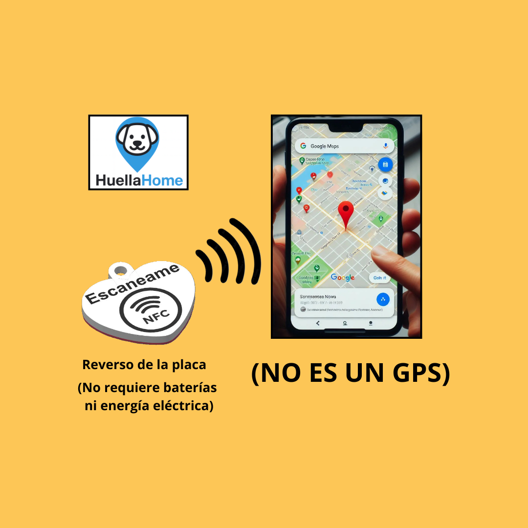 Si tu mascota se extravía, al escanear su placa HuellaHome con un teléfono móvil que tenga tecnología NFC, se abrirá automáticamente Google Maps, mostrando la ubicación del hogar de la mascota. Esto facilitará que quienes la encuentren puedan llevarla de regreso a casa de manera segura.